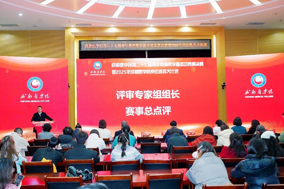 为持续加强高素质专业化教师队伍建设,进一步锤炼青年教师教学基本功,12月30日至31日,学校举办第二十七届青年教师教学基本功竞赛决赛暨2025年岗位练兵大比武。本届决赛创新采用“现场授课+线上直播”双轨并行模式,27名经各单位层层选拔推荐的优秀教师同台竞技。副校长张刚到现场指导,校本部、临床教学基地教师代表和学生代表等200余人到场观摩。