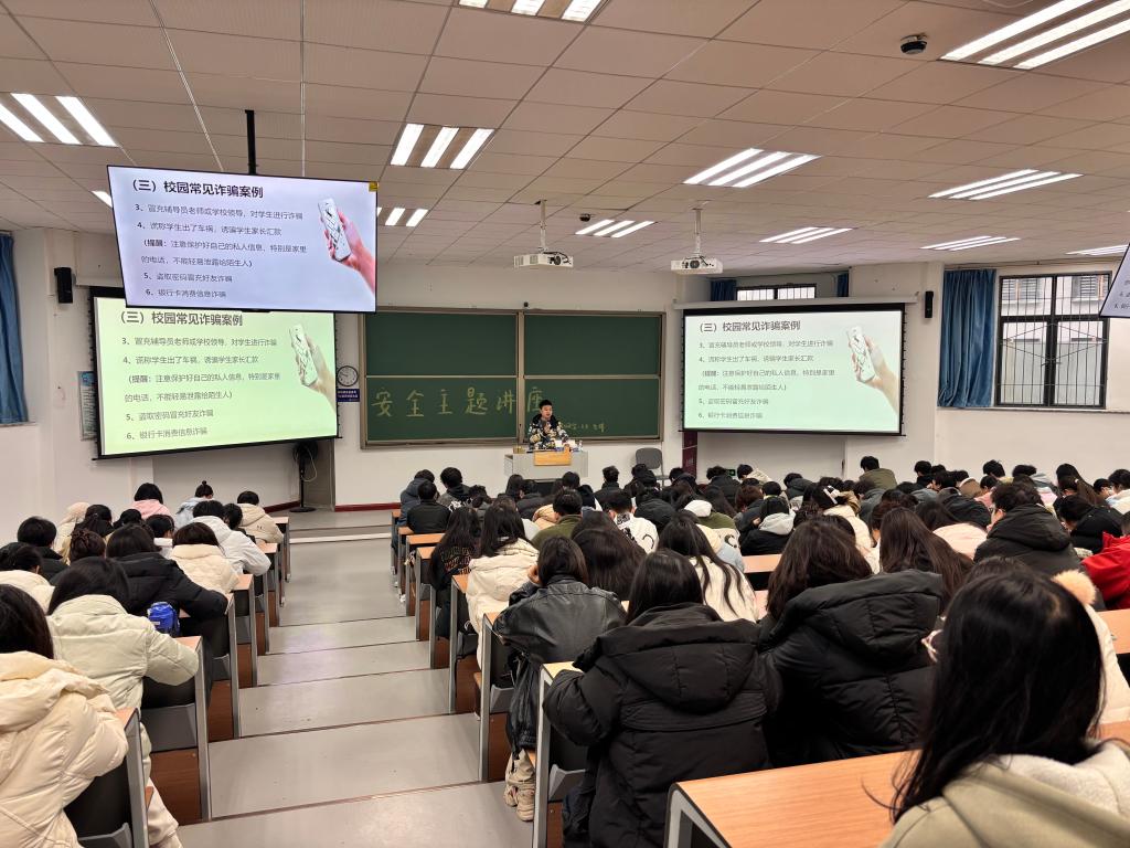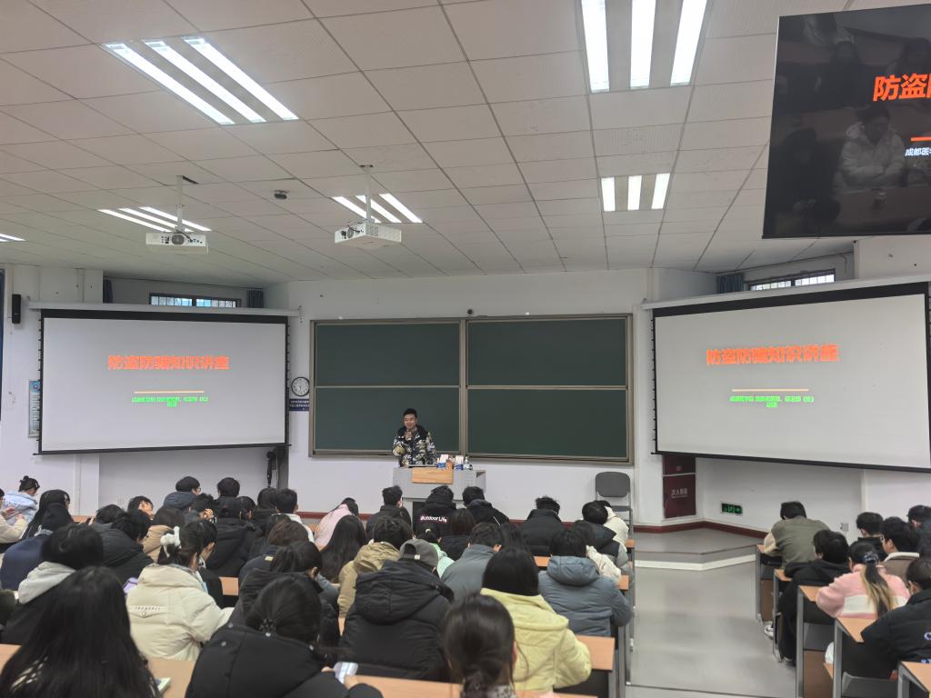 在防盗防骗环节,胡瑞老师结合近年来校内及周边发生的典型案件,深入剖析了宿舍财物保管、公共场所防盗、网络电信诈骗、兼职陷阱等多种常见安全风险的作案手法与特点,并提醒同学们时刻保持警惕,做到“不轻信、不透露、不转账”,守护好个人财产与信息安全。